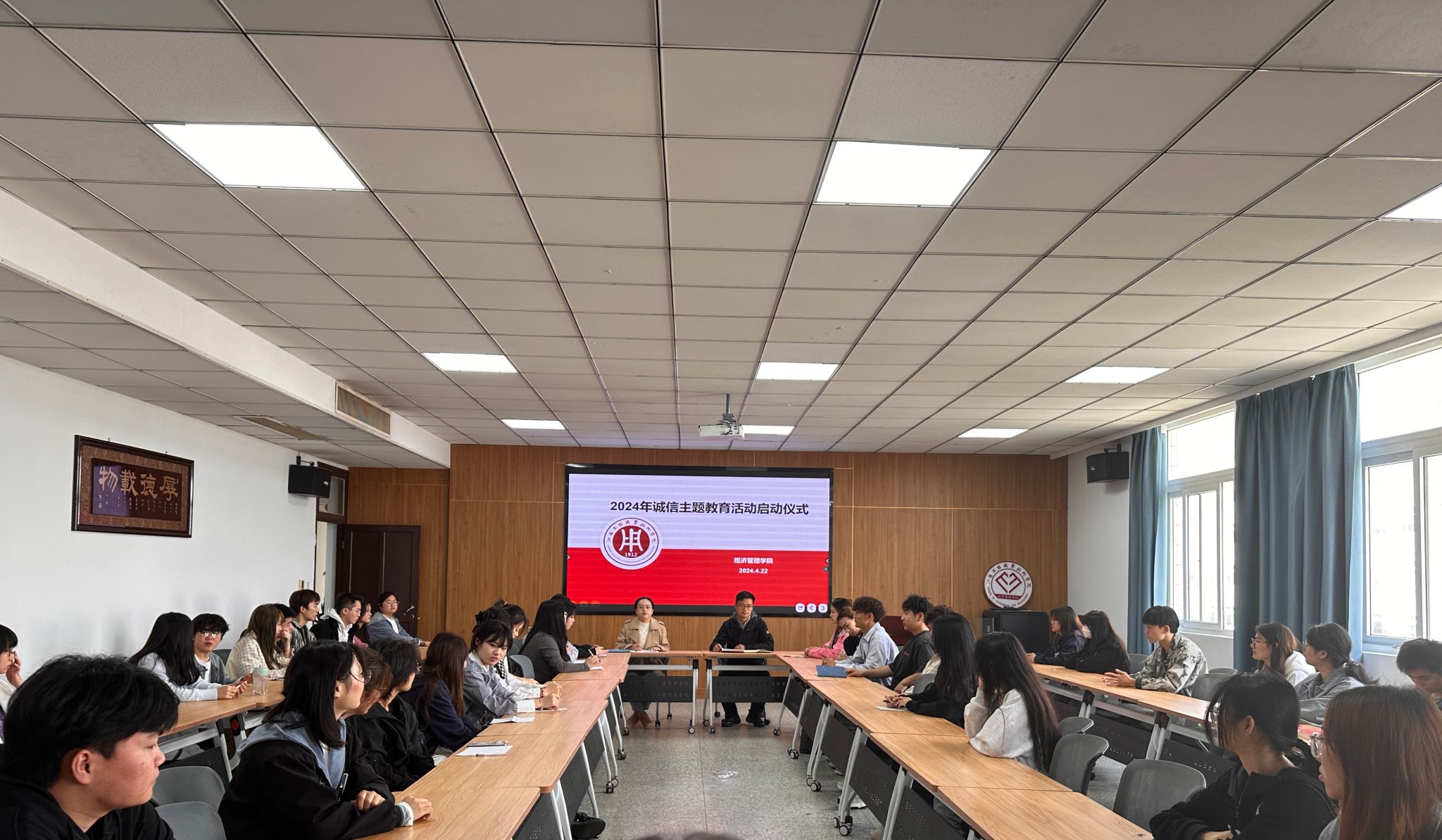 4月22日,经济管理学院举行了2024年诚信主题教育活动启动仪式。学院党总支副书记王谦和辅导员邢雅楠出席会议,学院全体22、23级班长参会,会议由邢雅楠主持。