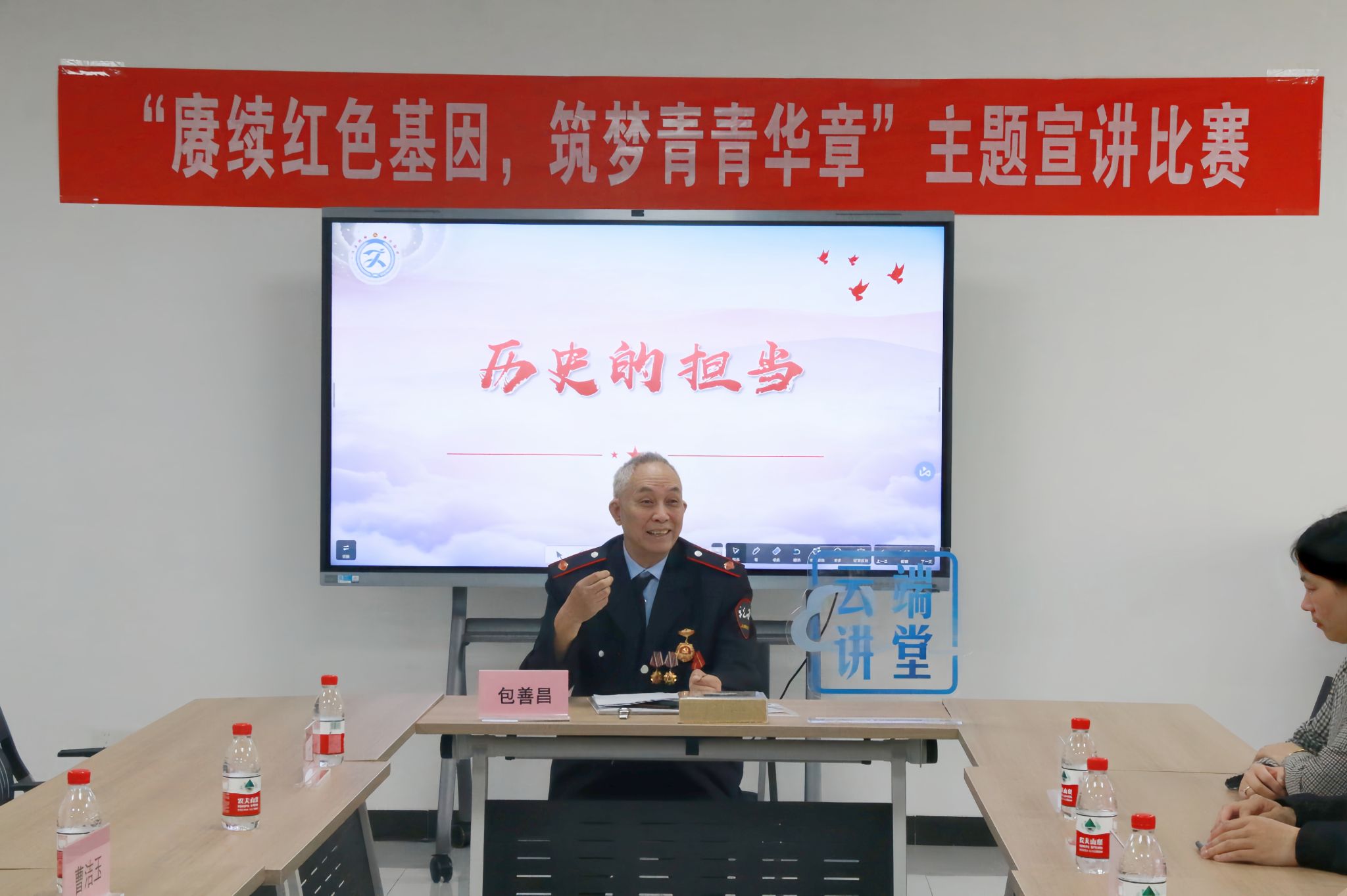 4月30日上午,经济管理学院联合新城桥街道在崇川校区一站式学生社区中心多功能室开展“红心向党 永葆初心”红色故事宣讲活动。参战老兵、原南通市税务局党组书记包善昌、新城桥街道团工委书记秦杨洋、关工委副主任曹洁玉、经济管理学院党总支副书记范晔、党总支副书记王谦、关工委常务副主任邱训荣、团总支书记朱建兰、团总支副书记李慧娴、入党和入团积极分子代表们参加活动。