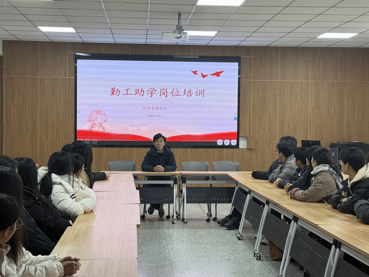 为进一步规范学院勤工助学岗位管理,提升学生工作能力与综合素质,经济管理学院于3月25号开展了勤工助学岗位培训活动,学院参与勤工助学的全体学生参加了此次活动。活动由辅导员徐保玮主持。