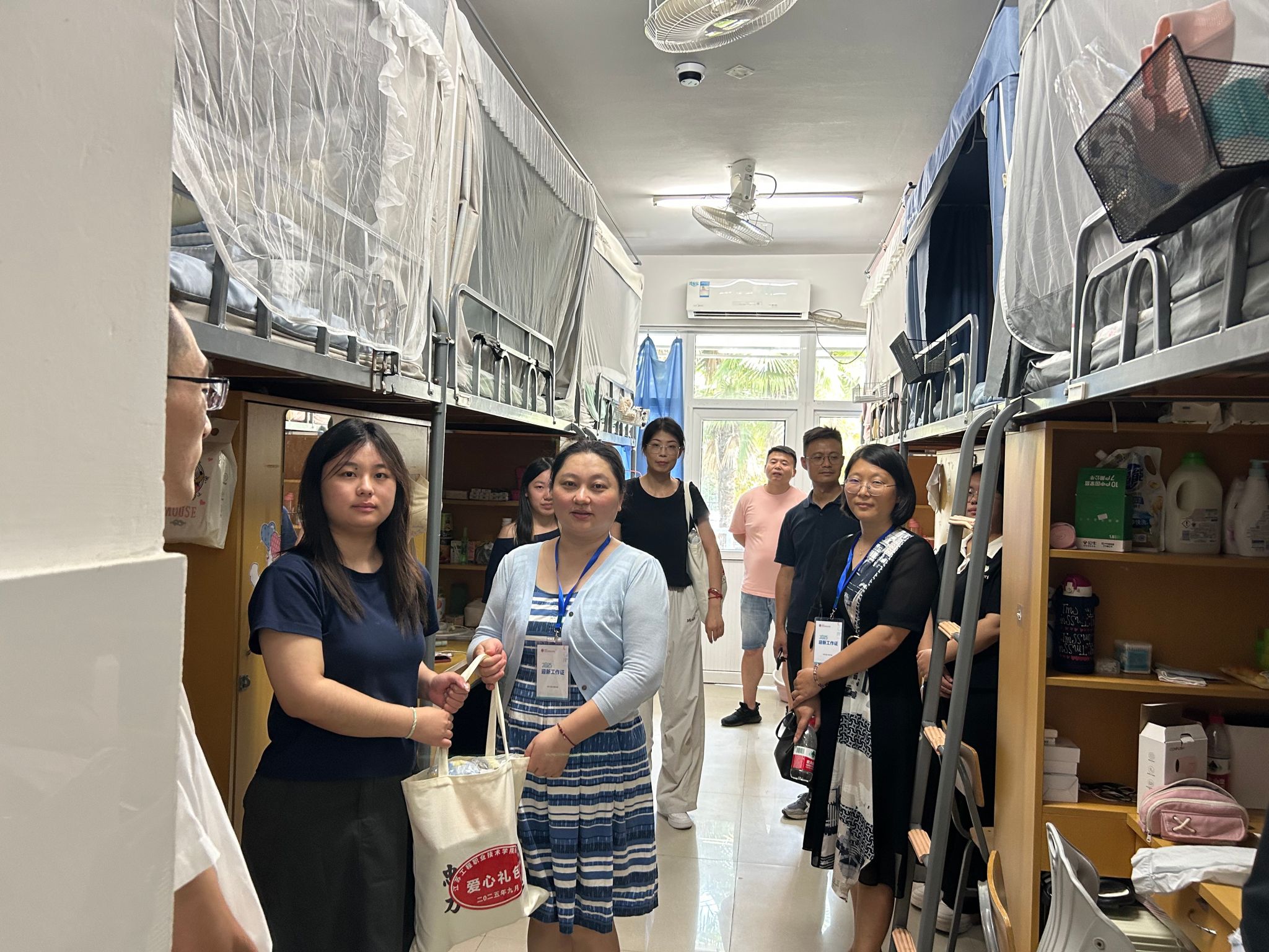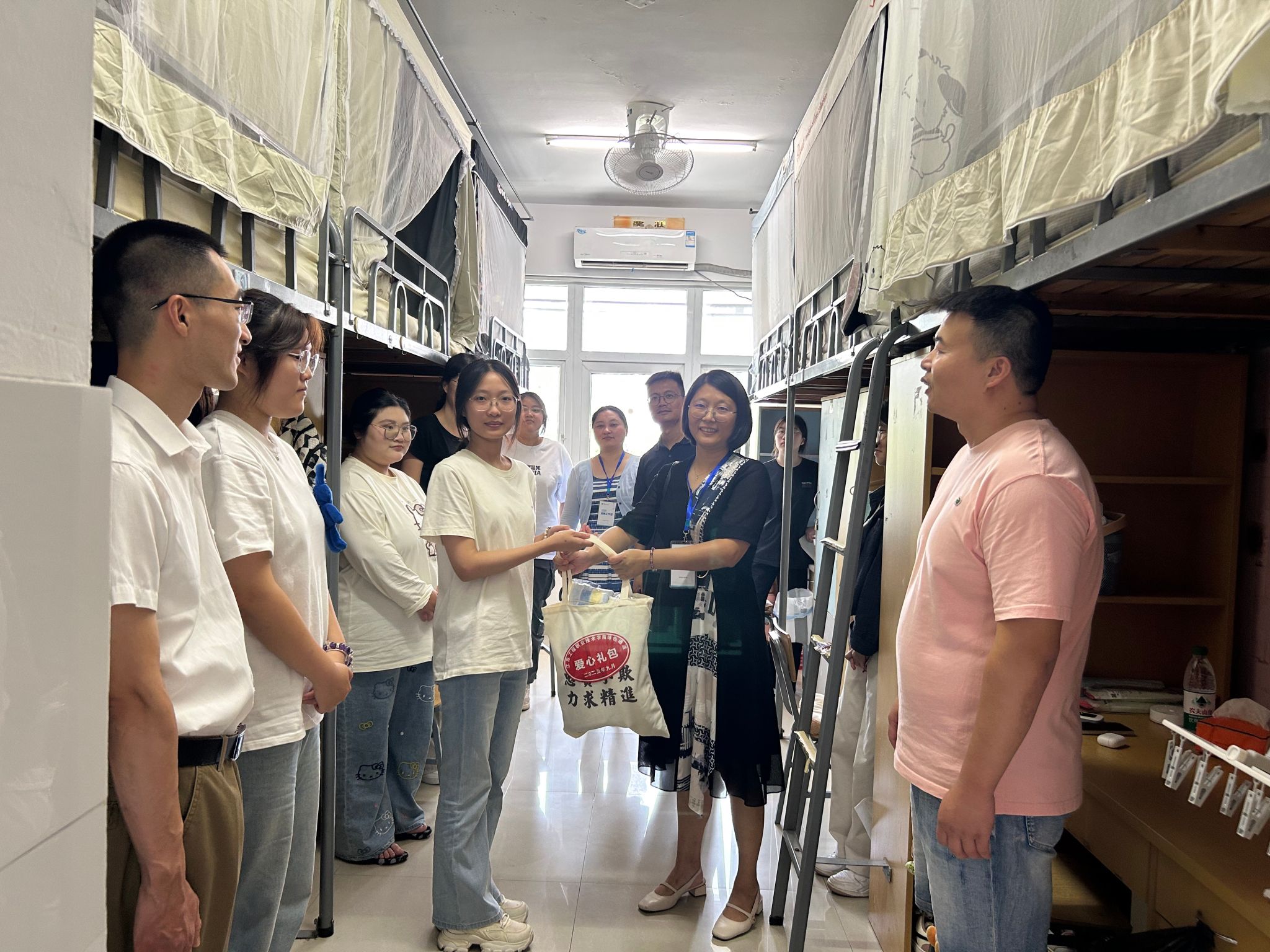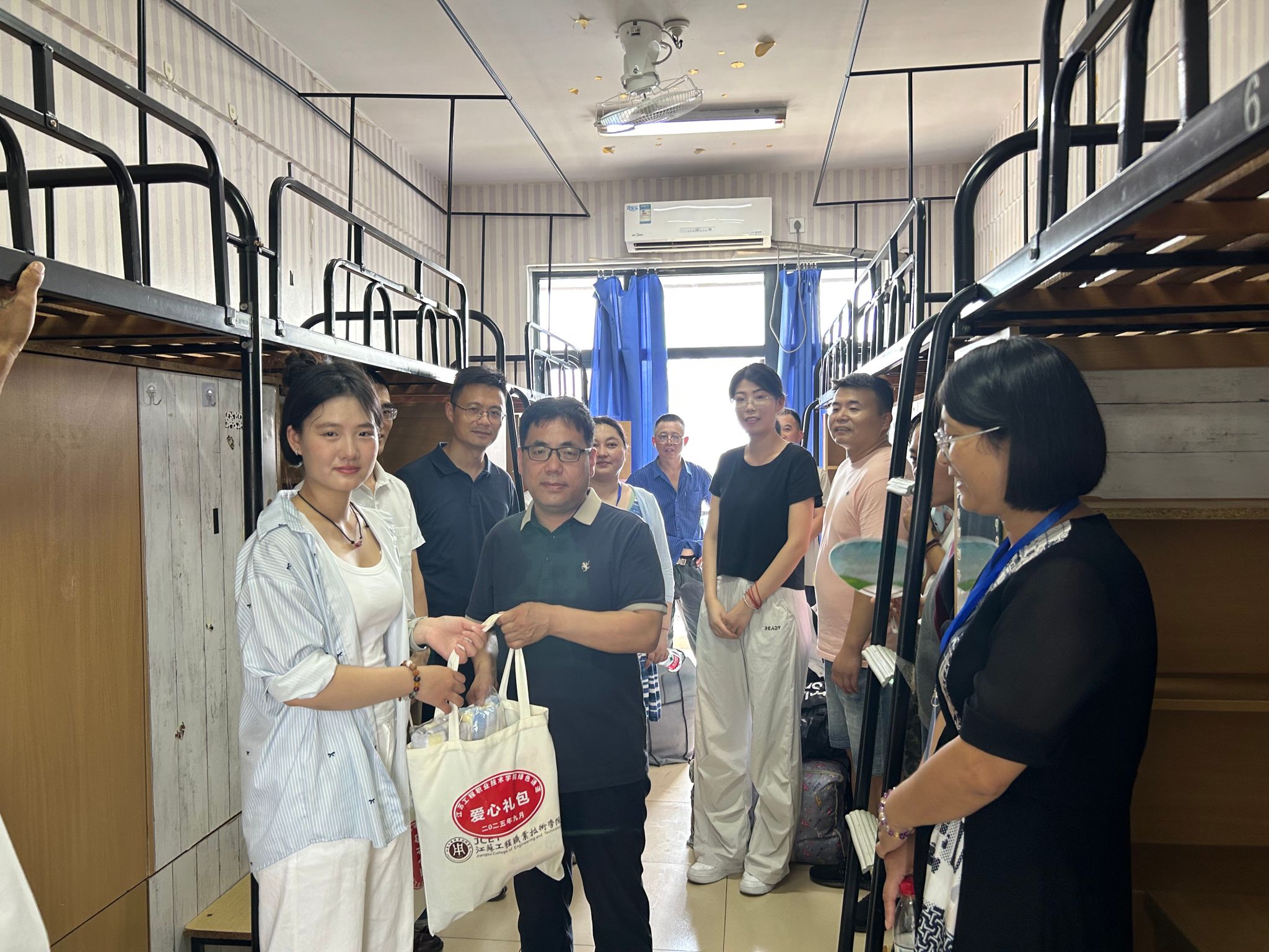 为深入了解新生入住后的生活状况,传递学院的爱心与关怀,2025年9月13日下午,经济管理学院院长王亚鹏,党总支副书记范晔、王谦,副院长刘晓岚带领辅导员与新生班主任走访宿舍,为刚入学的新生们送去爱心大礼包。