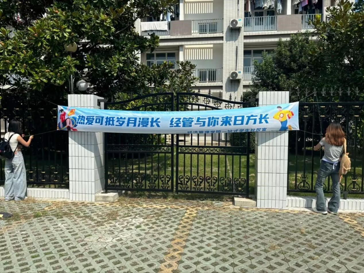 学院围绕营造温馨氛围、方便新生服务的原则,打造了多个特色区域。宿舍区入口设立“社区迎新站”作为集中服务核心,各宿舍楼前设立“楼栋服务点”方便就近服务;“新生心愿墙”,提供便签纸与笔供新生写下大学心愿与社区期待,新生宿舍门前还挂有励志门牌;宿舍区悬挂“经管逢君,尽展‘新’颜”“知否知否,经管对你期盼已久”“热爱可抵岁月漫长,经管与你来日方长”等主题横幅,让新生一进校园便能感受到浓浓的欢迎氛围。
