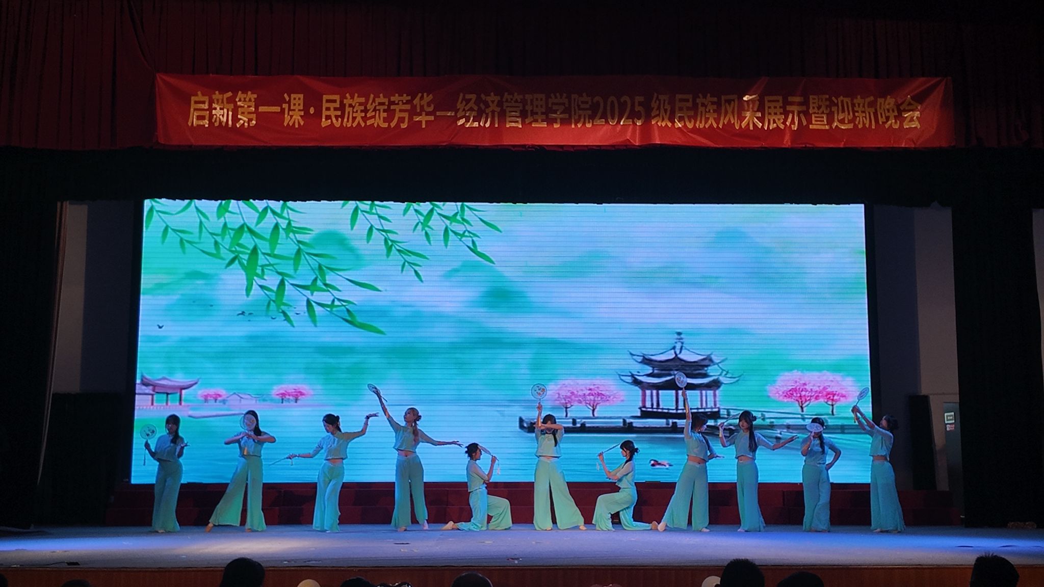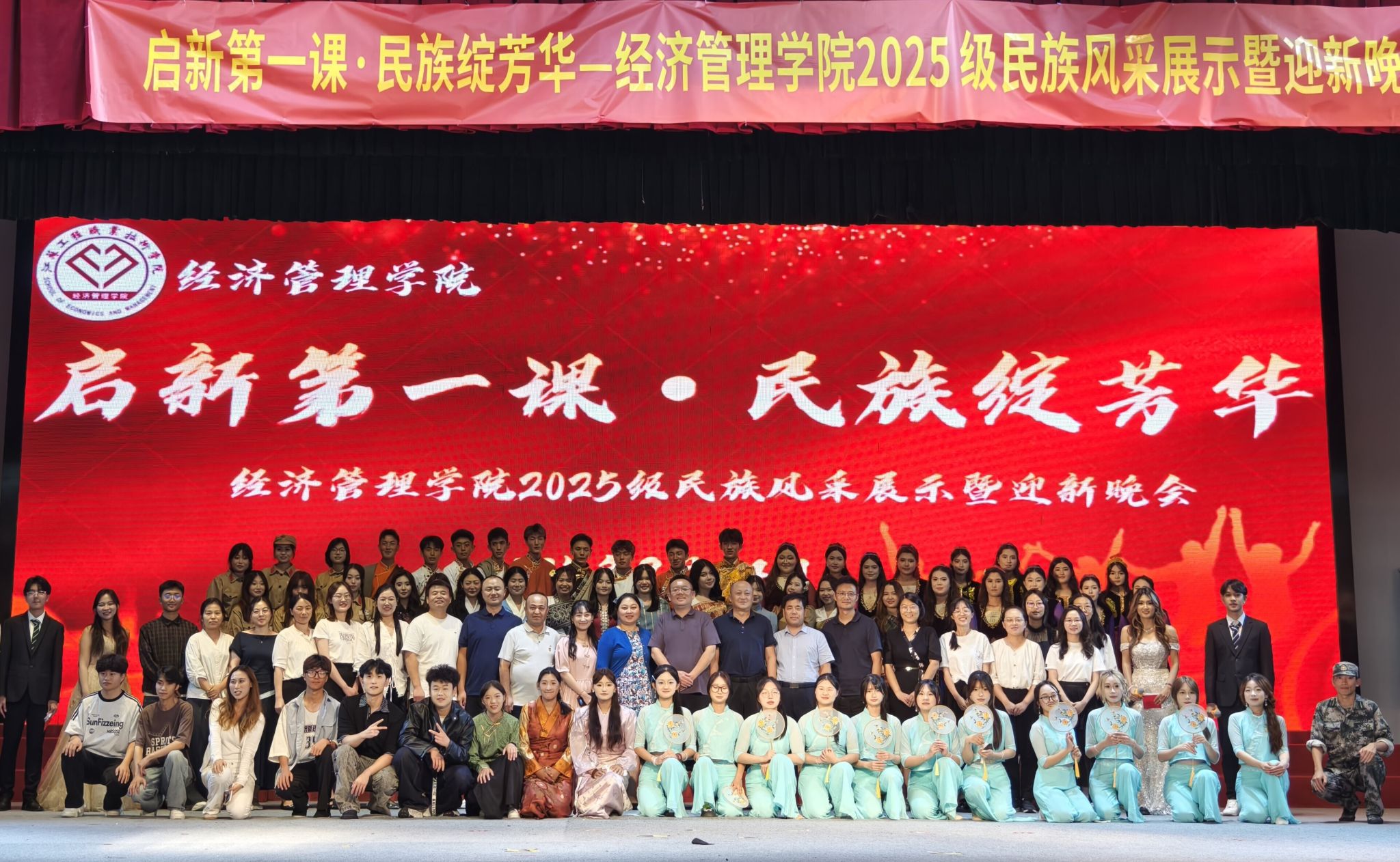 9月24日晚,经济管理学院2025级“启新第一课・民族绽芳华”民族风采展示暨迎新晚会在崇川大礼堂举行。校纪委书记、派驻监察专员顾剑锋,学生工作处处长徐明,校团委副书记沈雯,经济管理学院院长王亚鹏,党总支副书记范晔、王谦,副院长刘晓岚,新疆及西藏派驻教师,2025 级全体辅导员、班主任以及 700 余名新生共同参与了此次活动。