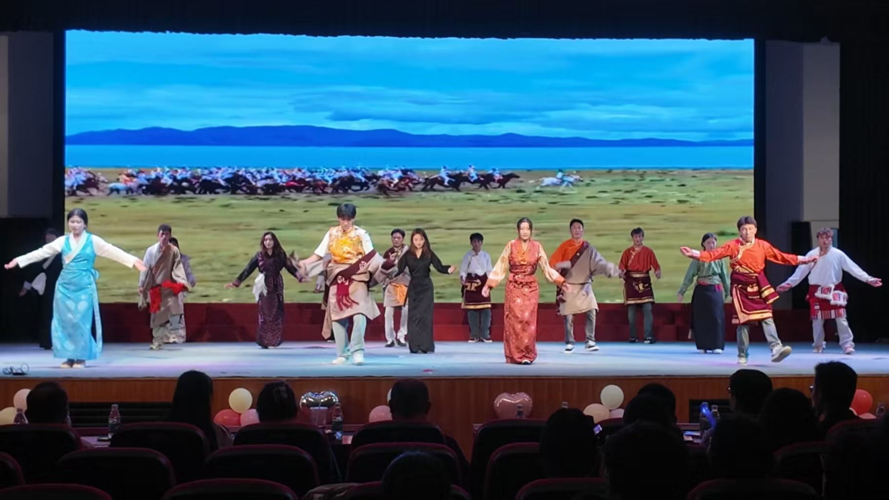 当晚的迎新晚会亮点十足、精彩纷呈。舞蹈《石榴花开》《民族展风采》《共跳思乡情》将浓郁的民族风韵展现得淋漓尽致,来自不同民族的同学们同台献艺,其中不乏受到国家资助政策帮扶的家庭经济困难少数民族学生,他们在舞台上自信绽放的身影,正是学校“资助育人”工作成效的生动写照。当全场师生共同唱响《爱我中华》时,激昂的旋律不仅传递着民族团结的深厚情谊,也唱出了各民族学子在党和国家关怀下共同成长进步的坚定信念。