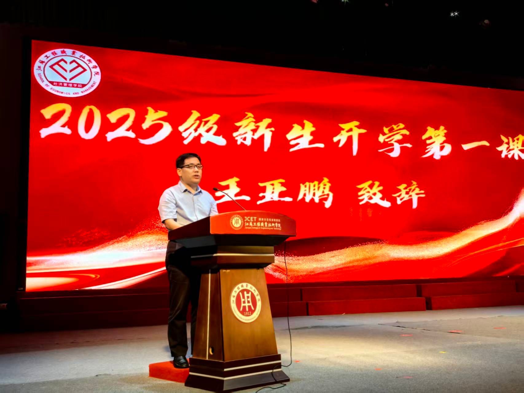 在“开学第一课”环节,王亚鹏为新生致辞。他围绕“希望同学们敬畏立德”“强调同学们要敬畏学习”“要求同学们敬畏规矩”三个核心观点,引导新生以社会主义核心价值观为指引,明确学习知识技能是根本责任,自觉遵守法律法规与学校规章制度,共同建设更优质的经济管理学院。随后,新生班主任代表曹燕霞、新生代表陆可萱先后发言,前者传递师生间的殷切叮嘱,后者抒发对大学校园生活的美好憧憬,话语间的真挚情感在每位同学心中留下了深刻印记。