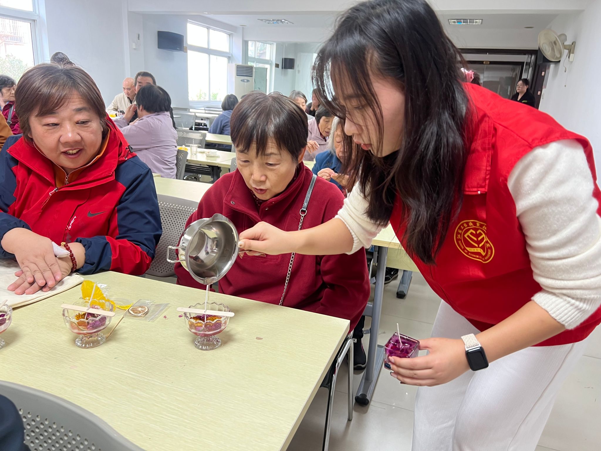 活动尾声,大家一同分享象征吉祥与祝福的重阳糕。糯米香与烛香交织在一起,将节日的氛围推向高潮。大家品尝着软糯的糕点,交流着身边的趣事,欢声笑语不绝于耳。这份重阳糕的甜蜜,不仅润在唇齿,更暖在心间,将志愿者、社区工作者与老人们的心紧密相连。