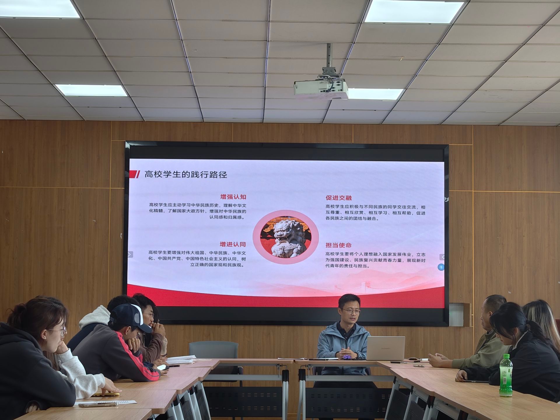 一堂思政课,一把“金钥匙”。王谦以“深入学习贯彻二十届四中全会精神 铸牢中华民族共同体意识”为主题,为少数民族学生讲授了一堂深刻而生动的思政课。他引领同学们深刻把握二十届四中全会的时代价值,系统阐释了中华民族共同体意识的丰富内涵,并深入探讨了铸牢中华民族共同体意识的实践路径与方向。王谦特别强调,国家与学校始终关心每位同学的成长发展,建立了完善的资助政策体系,让各位同学都能安心求学、全面发展。整堂课思想深刻、条理清晰,同学们凝神聆听,深受启发,有效凝聚了团结奋进的青春力量。