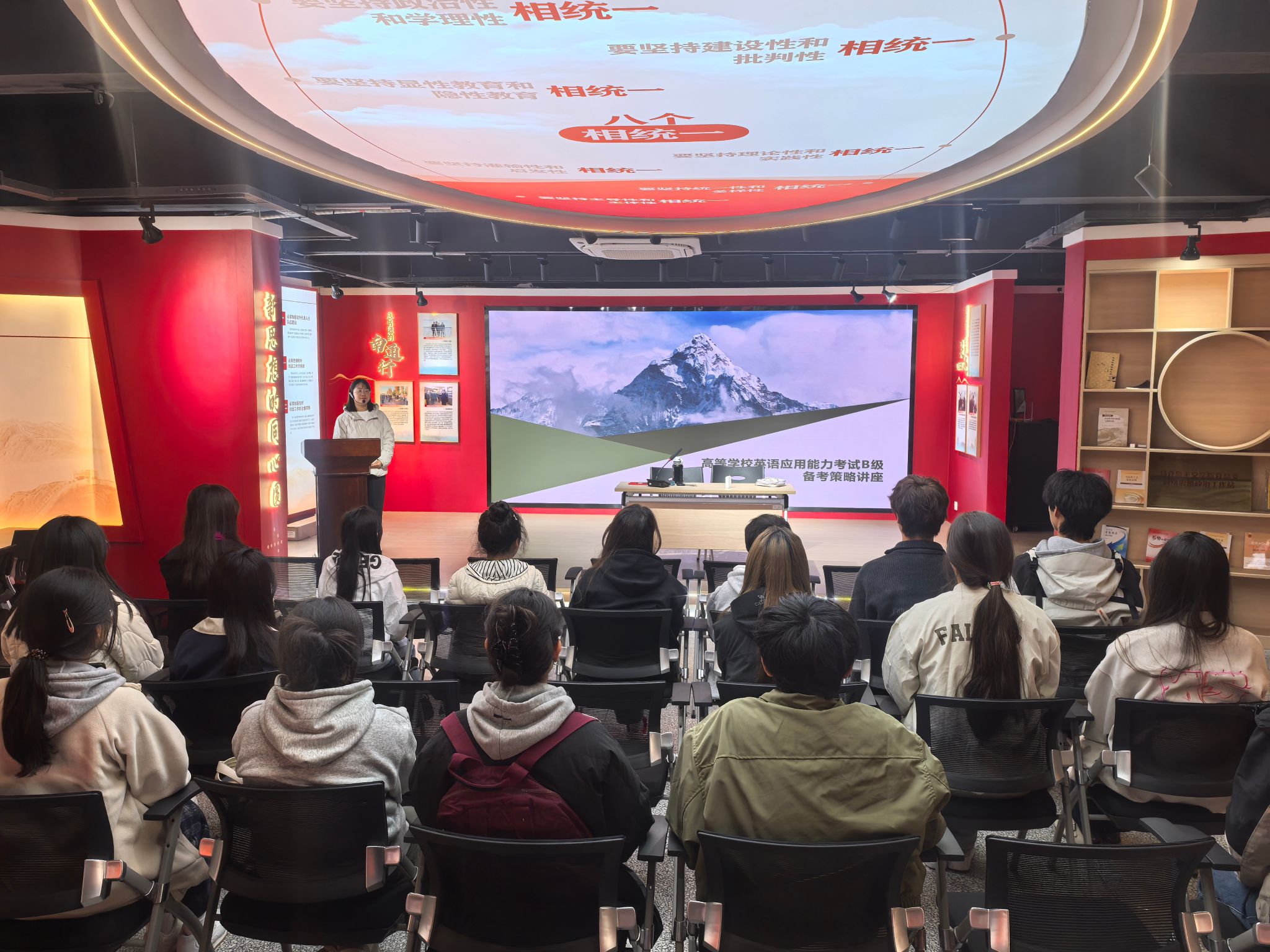 学业发展是学生成长的重要基石。为精准解决同学们在英语学习上的实际困难,学院特邀基础教学部沈邦华老师开设了“高等学校英语应用能力考试B级备考策略”专题讲座。沈老师从听力、词汇、阅读、翻译到写作,系统梳理了备考要点与技巧,为同学们指明了复习方向,极大地增强了他们的应试信心。