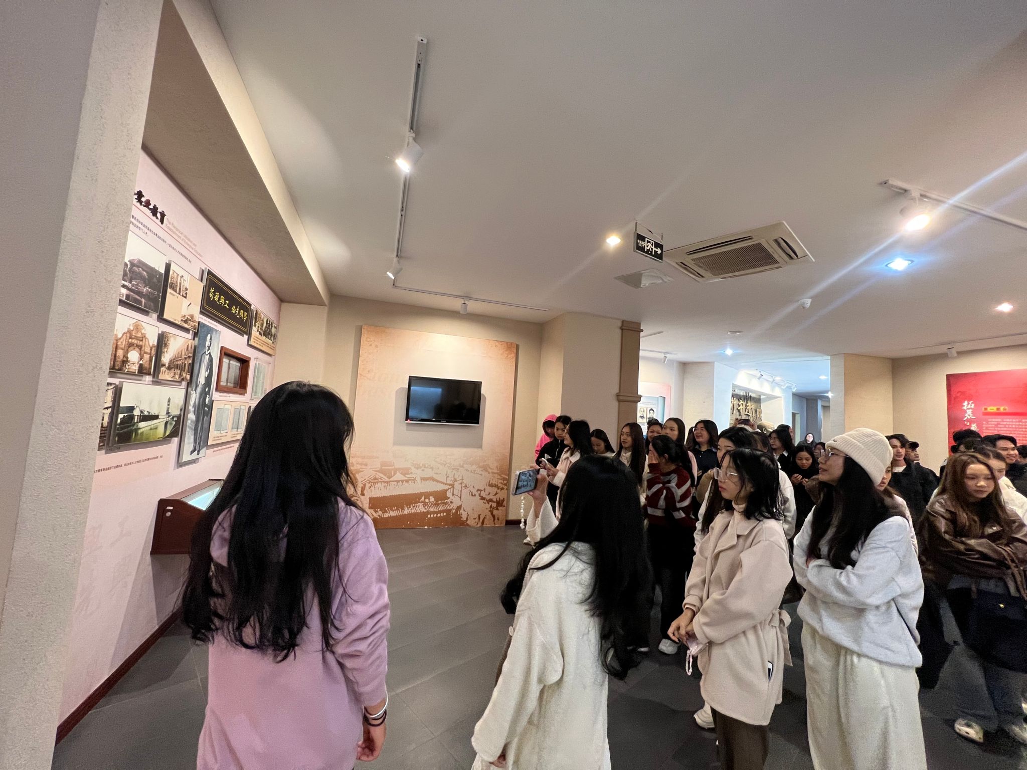 文博馆是融合张謇职教思想、纺织艺术与非遗传承的综合性教育基地,为国际贸易专业学生理解中国工商业历史与特色产业提供了生动课堂。同学们依次参观了张謇职教思想陈列馆、中国家纺艺术馆、色织土布技艺馆和沈寿刺绣传习馆。张謇先生“父教育而母实业”“学必期于用,用必适于地”的职教理念让同学们对职业与教育的关系有了直观认识。丰富的馆藏品引起了大家的热烈讨论,他们将我国传统的纺织品与老挝的织锦工艺进行对比,展开了一场生动的文化融合交流。