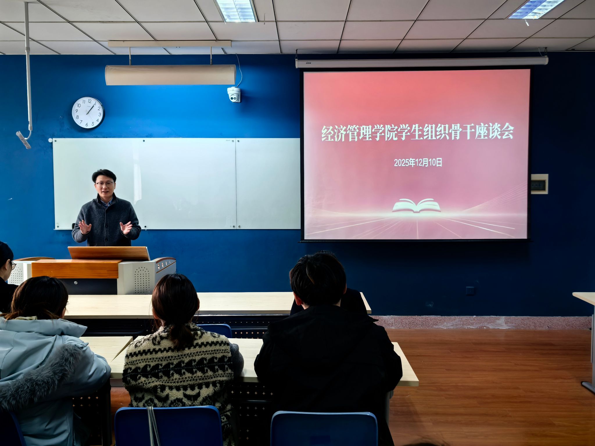 为进一步筑牢校园安全防线,充分发挥学生骨干在校园安全治理中的先锋作用,搭建学院与学生组织间的安全沟通桥梁,12月10日,经济管理学院学生组织骨干座谈会在致知楼413顺利召开。学院党总支副书记沈峻锋,团总支书记朱建兰,院学生会、自管会、心理协会、励志学社等骨干代表齐聚一堂,会议由团总支副书记李慧娴主持。