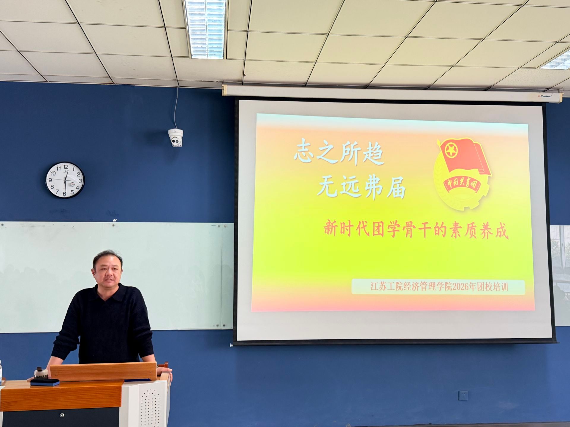 本期团校培训涵盖理论宣讲、实践拓展和结业考试三个环节,内容充实、形式多样。开班仪式上,沈峻锋作动员讲话,勉励全体学员珍惜学习机会,坚定理想信念,在学思践悟中不断提升自我。沈峻锋以“我为什么加入中国共青团”为题,结合自身经历与青年成长实际,引导学员回望入团初心、明确使命担当。徐甜甜以“马克思主义中国化时代化的历史进程与理论成果”为题,深入浅出地阐述了马克思主义在中国的创新发展历程,引导学员筑牢理论根基。钱晋以“志之所趋,无远弗届——新时代团学骨干的素质养成”为题,从责任意识、组织能力、服务精神等方面对团学骨干提出明确要求。
