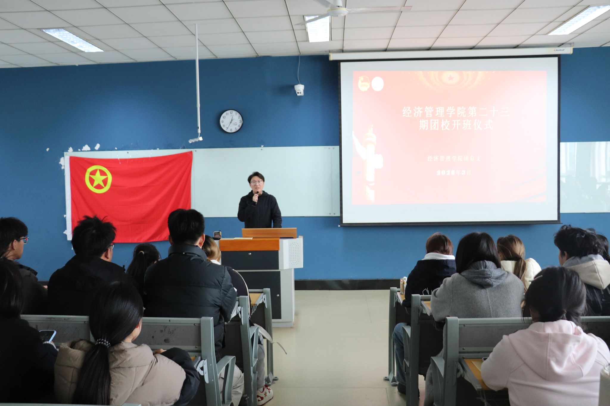 为切实加强青年学生思想引领,提升学生的理论素养与实践能力,经济管理学院于3月23日至3月30日举办第二十三期团校培训班。本次培训由学院党总支书记钱晋、党总支副书记沈峻锋,马克思主义学院教师徐甜甜,辅导员李楠、李成敏担任主讲,来自各团支部的优秀团员及入团积极分子共计190人参加。
