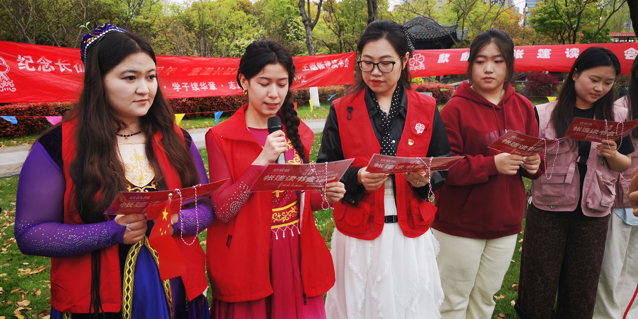 4月11日,经济管理学院团总支联合崇川区新城桥街道工会、妇联、关工委、欣欣然亲子俱乐部共同主办的“重温长征路 薪火永相传”欣欣然帐篷读书会暨信仰公开课,在曹顶纪念公园顺利举行。学院青马班学员、少数民族学生代表与“育梦童行”志愿服务队成员以志愿者身份全程服务并同步开展现场直播,用青春行动传递红色火种,让长征精神在新时代焕发新光芒。