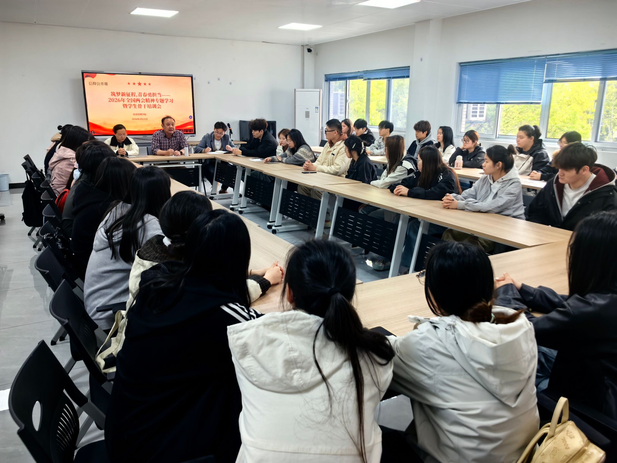 本次两会专题学习暨学生骨干培训会主题鲜明、内容扎实,这堂“信仰公开课”不仅加深了同学们对2026年全国两会精神的理解,也进一步激发了广大学生骨干的责任感与使命感。未来,经济管理学院将持续开展形式多样的活动,推动两会精神在青年学生中落地生根、开花结果,引导大家以实际行动践行“请党放心,强国有我”的青春誓言,在新时代新征程上奋力书写更加精彩的青春篇章。(经济管理学院 李楠/文 学生分会/图 陶艺/推荐 钱晋/审核)