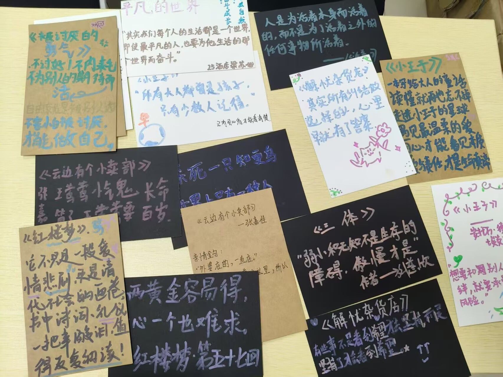 活动伊始,同学们现场书写心仪书名与经典语句,分享触动心灵的阅读片段,在文字交流中沉淀感悟、增进共鸣。随后,多位同学依次分享阅读心得,围绕童话经典、中外名著、人文佳作畅谈所思所获,在思想交流中拓宽视野、传递书香力量,现场氛围温馨而热烈。