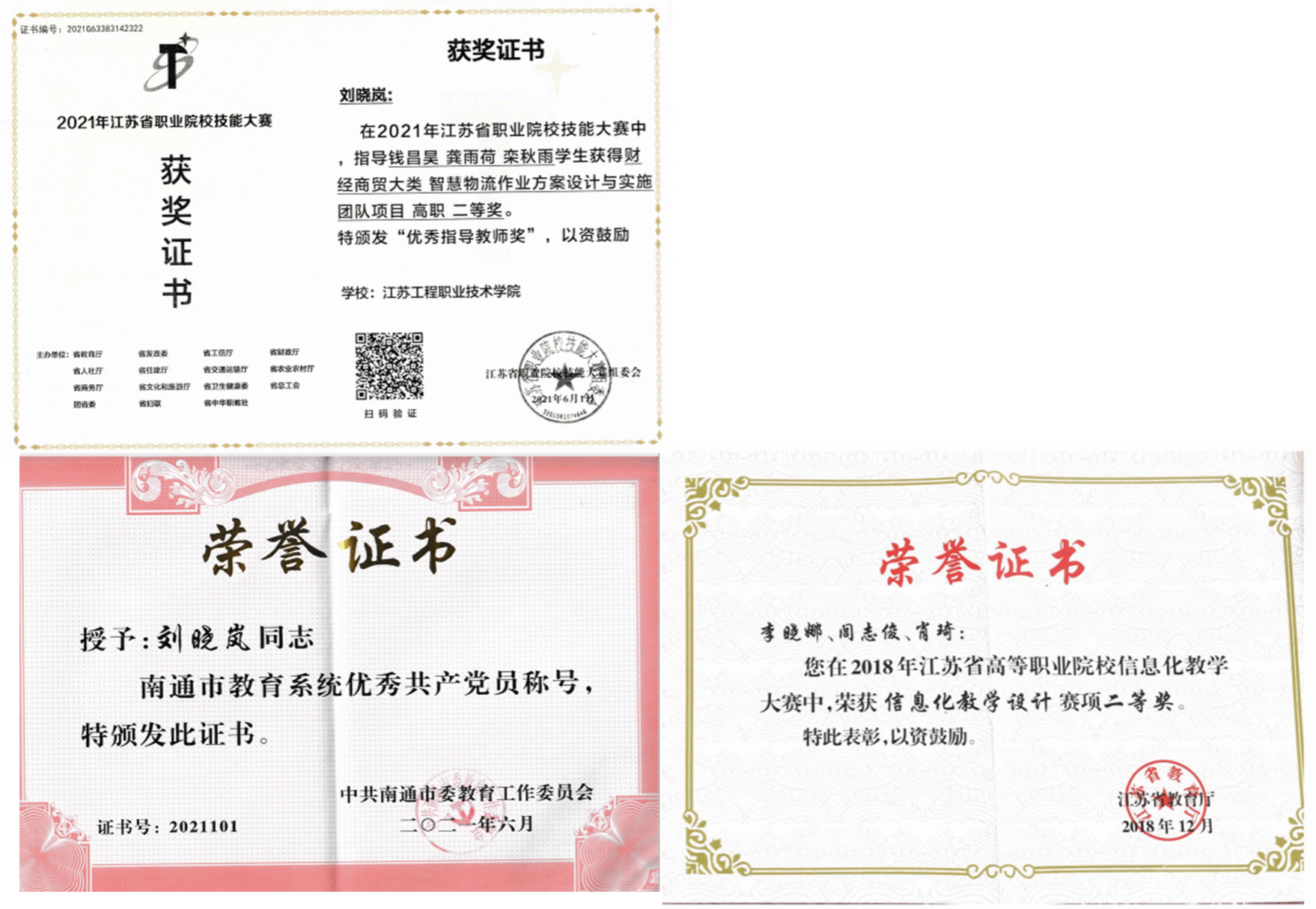 专业教师近年来获“南通市教育系统优秀共产党员”“南通大中专院校教学能手”“江苏工院教学名师”“江苏工院优秀共产党员”“江苏工院优秀班主任”等称号,担任省财经商贸职业教育行业指导委员会物流专业委员会委员、南通市综合交通运输学会理事、南通市综合交通运输协会理事。