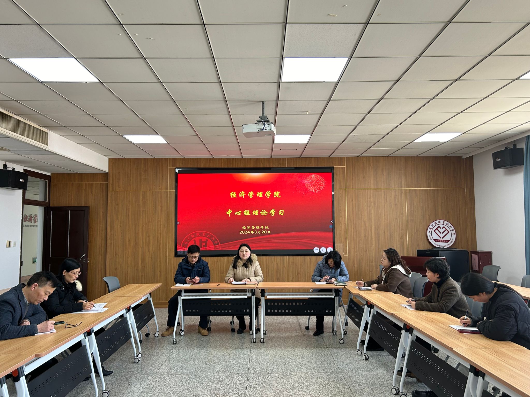 为深入学习贯彻全国两会精神,3月20日经济管理学院党总支理论学习中心组专题传达学习全国两会精神。会议由学院党总支副书记范晔主持,全体中心组成员参加。