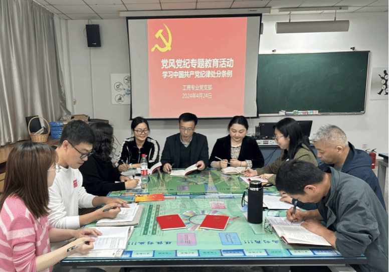 4月24日下午,经济管理学院党总支各支部开展党纪学习教育,会议由各党支部书记主持,全体教师党员参加。