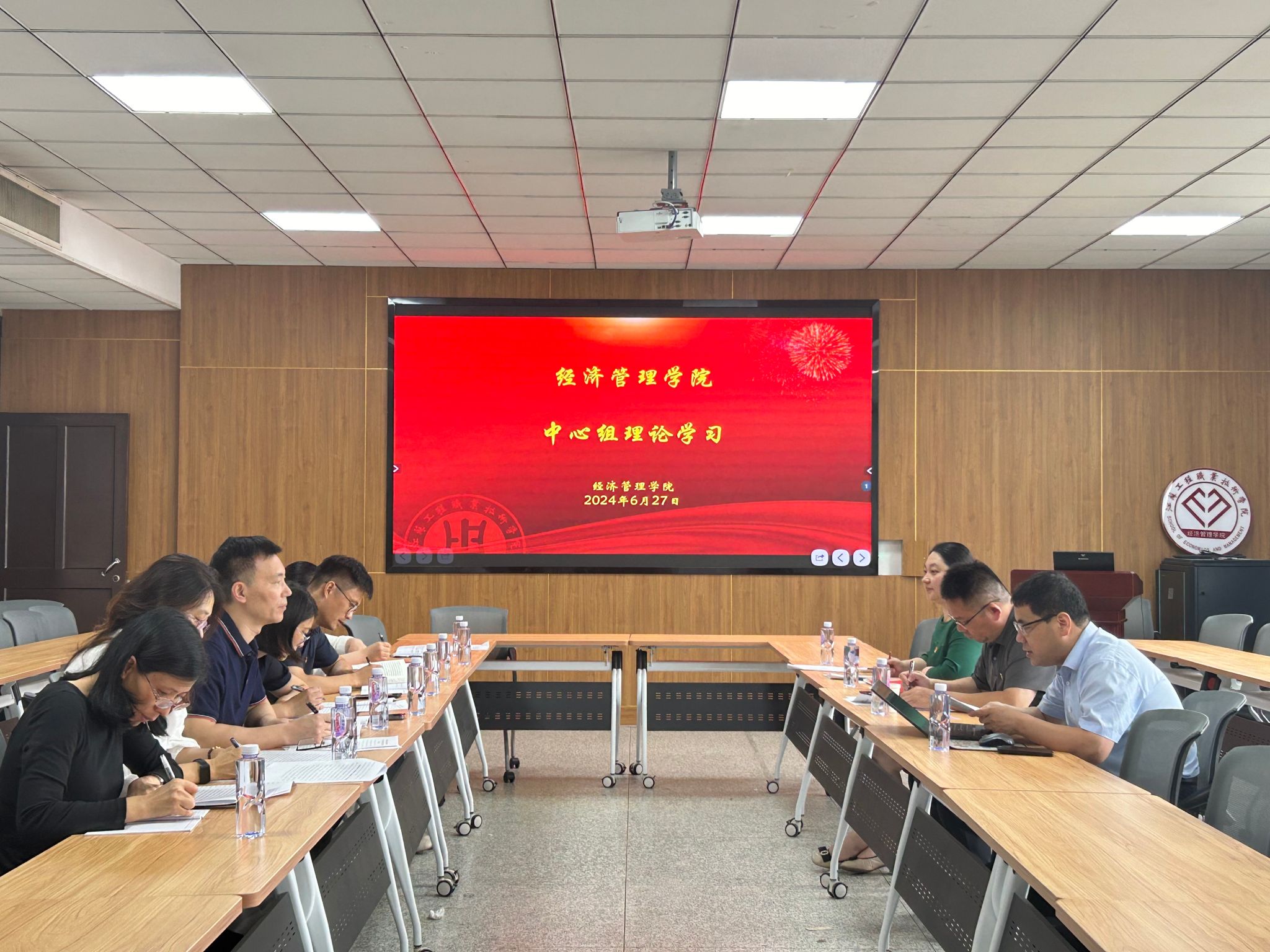 6月27日,经济管理学院党总支在致知楼604会议室召开理论学习中心组学习会,校党委委员、纪委书记(监察专员)顾剑锋全程巡学旁听。会议由经济管理学院党总支副书记范晔主持,理论学习中心组成员参加了学习会。