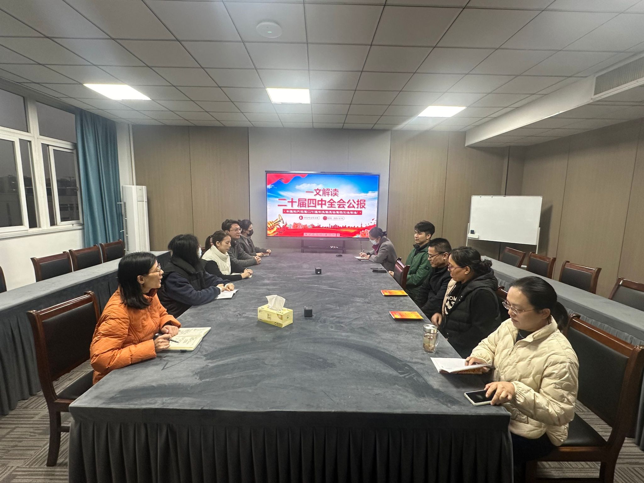 12月10日下午,经济管理学院党总支组织各支部开展深入学习贯彻党的二十届四中全会精神专题学习活动,学院党员教师参加了本次活动,活动由各党支部书记主持。