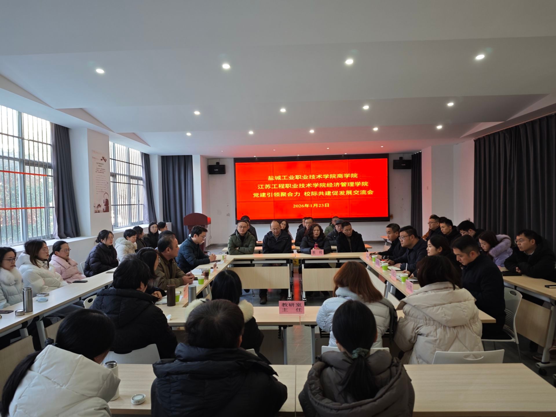 1月23日上午,经济管理学院教师队伍走进盐城工业职业技术学院商学院,双方围绕基层党建提质、融合发展路径、人才培养创新、专业建设升级等核心议题展开深入研讨。