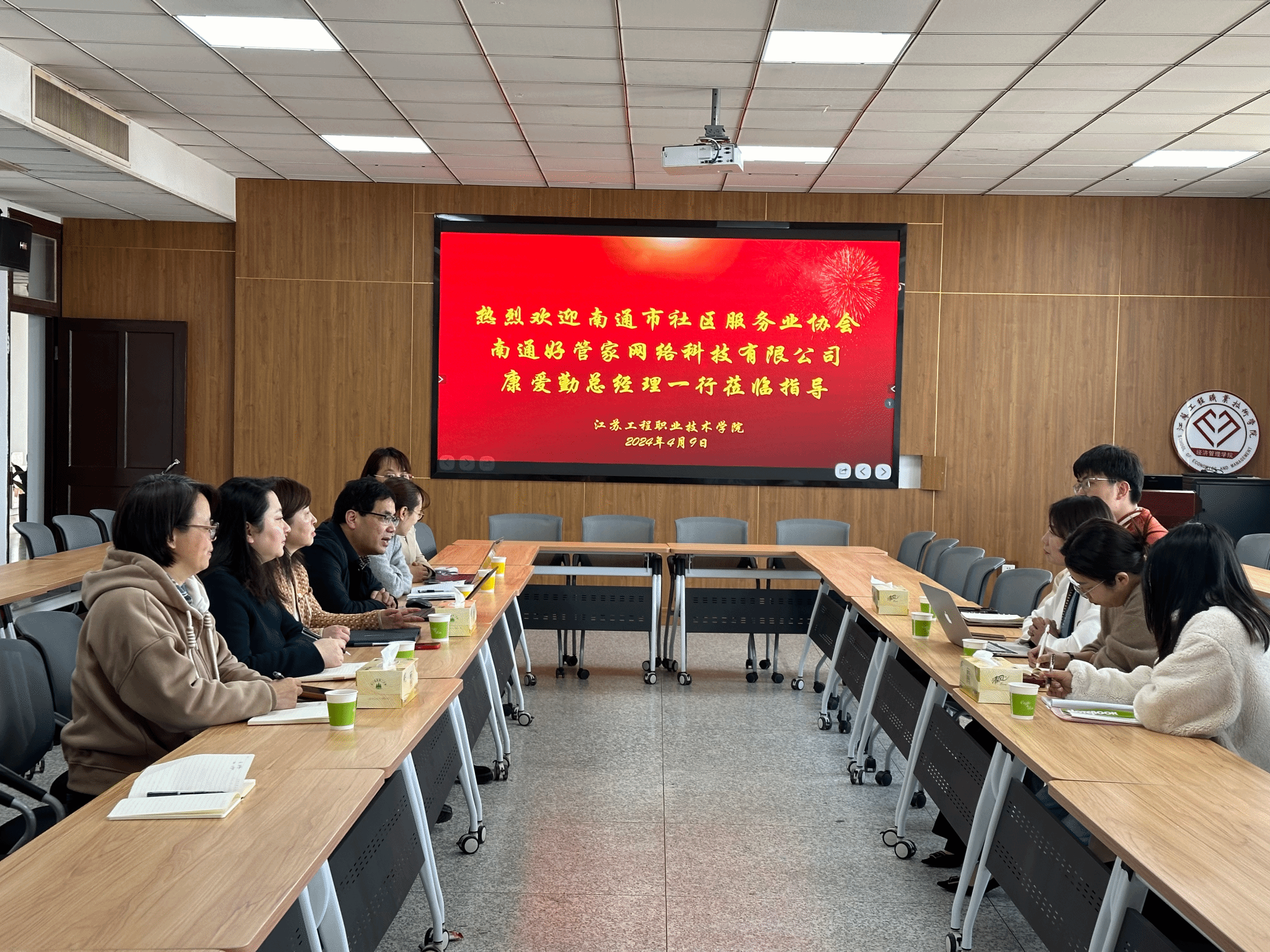 4月9日,南通好管家网络科技有限公司总经理康爱勤携团队来访我校洽谈校企合作事宜。校党委委员、副院长丛彬彬,经管学院院长王亚鹏,经管学院党总支副书记范晔及相关专业骨干教师参加了此次交流。