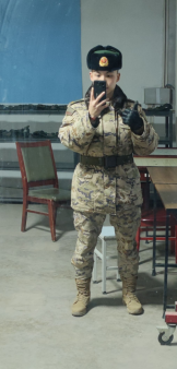 2021年9月,他积极响应国家号召,参军入伍,成为了一名武警战士,经过新兵连三个月的刻苦训练,2021年12月28日下队到本级单位。部队服役期间,他参加了2022年北京冬奥会执勤安保的选拔,因个人能力素质突出,在500多名新兵中脱颖而出,成为了四名执勤保安中的一员。此任务跨度2个半月,他所在任务区,勤务包值是一包一,单人执勤且没有轮班,一班岗时间一般为5个小时左右。执行任务期间,因处置情况得当,保持了哨位绝对安全,被支队评为2022年冬奥会执勤安保“优秀哨兵”。